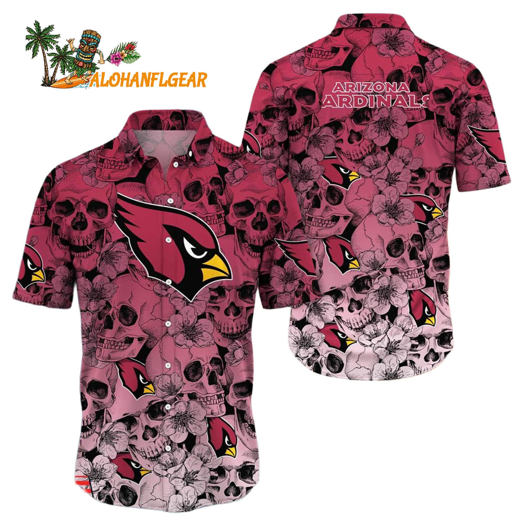 Arizona Cardinals Skull Pattern Aloha Hawaiian Shirt