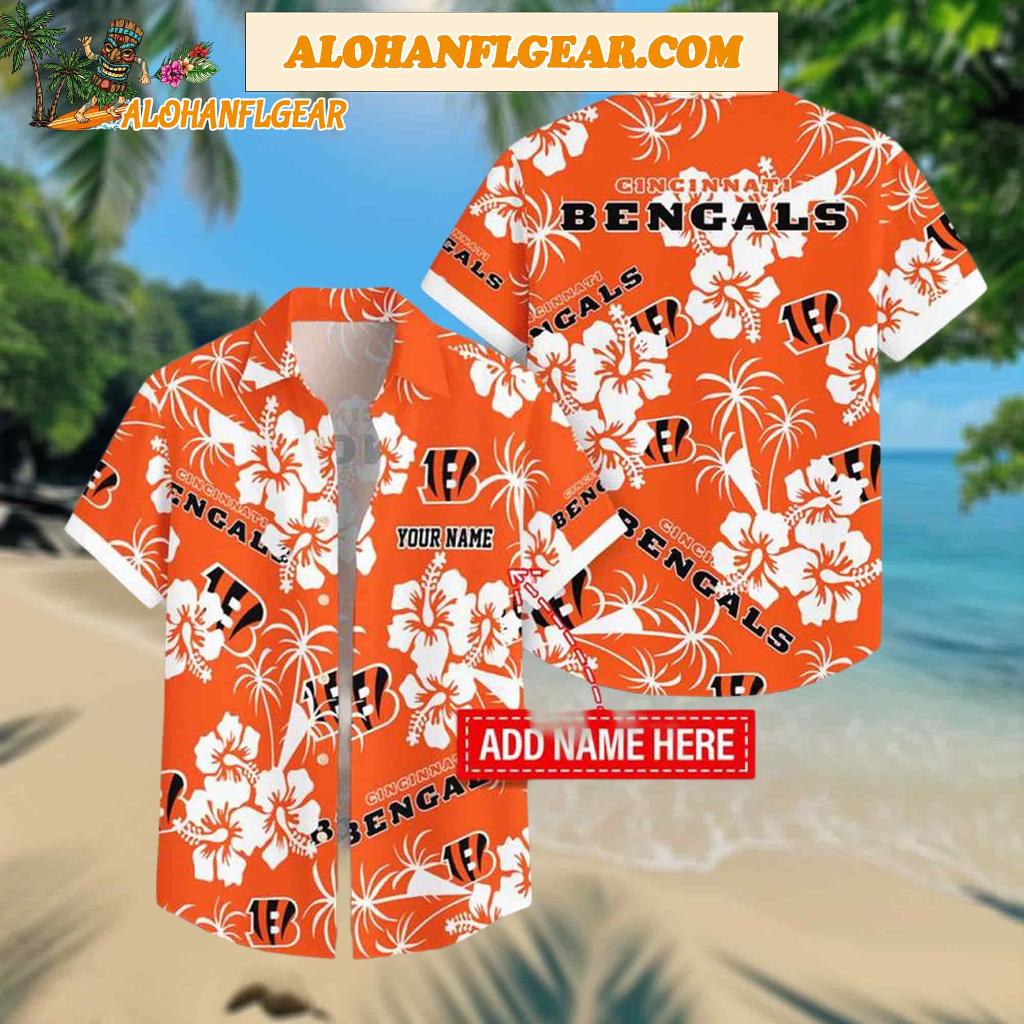 Photos Of Custom Name Cincinnati Bengals Hibicus Aloha Hawaiian Shirt