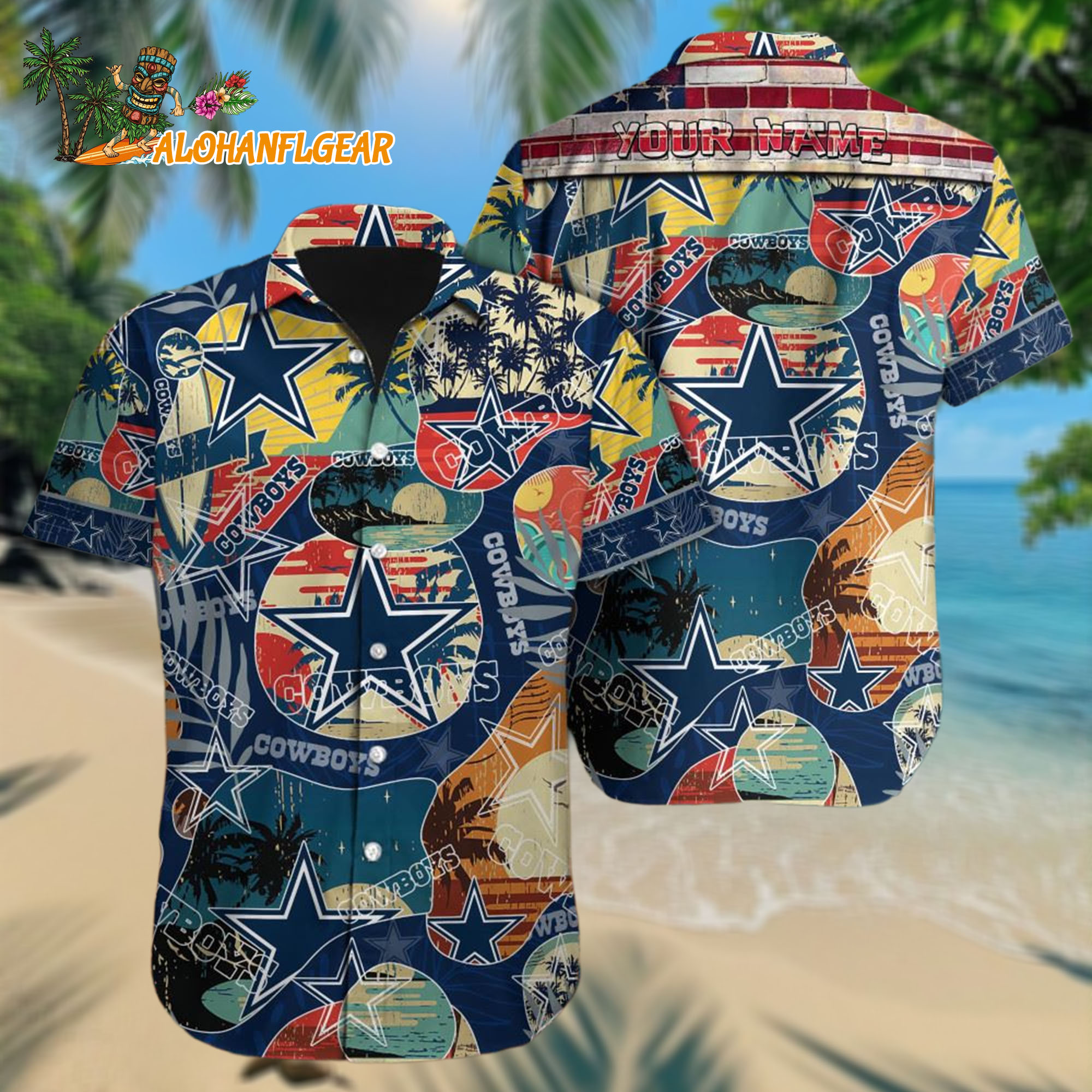 - Dallas Cowboys Great Wave Hawaiian Shirt Custom Name And Number NFL Aloha Shirt