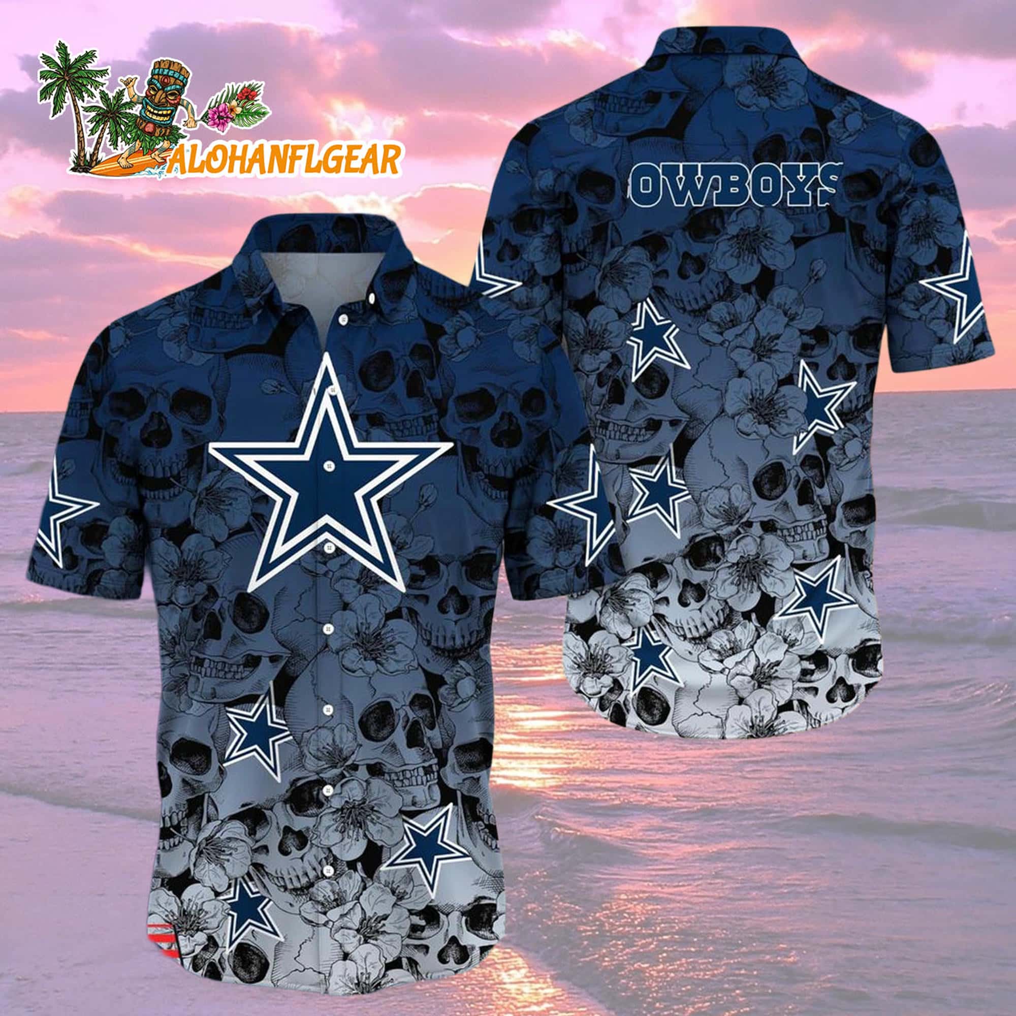 👉 Shop your Dallas Cowboys Skull Pattern Aloha Hawaiian Shirt now at AlohaNFLgear.com and show your team colors the tropical way.