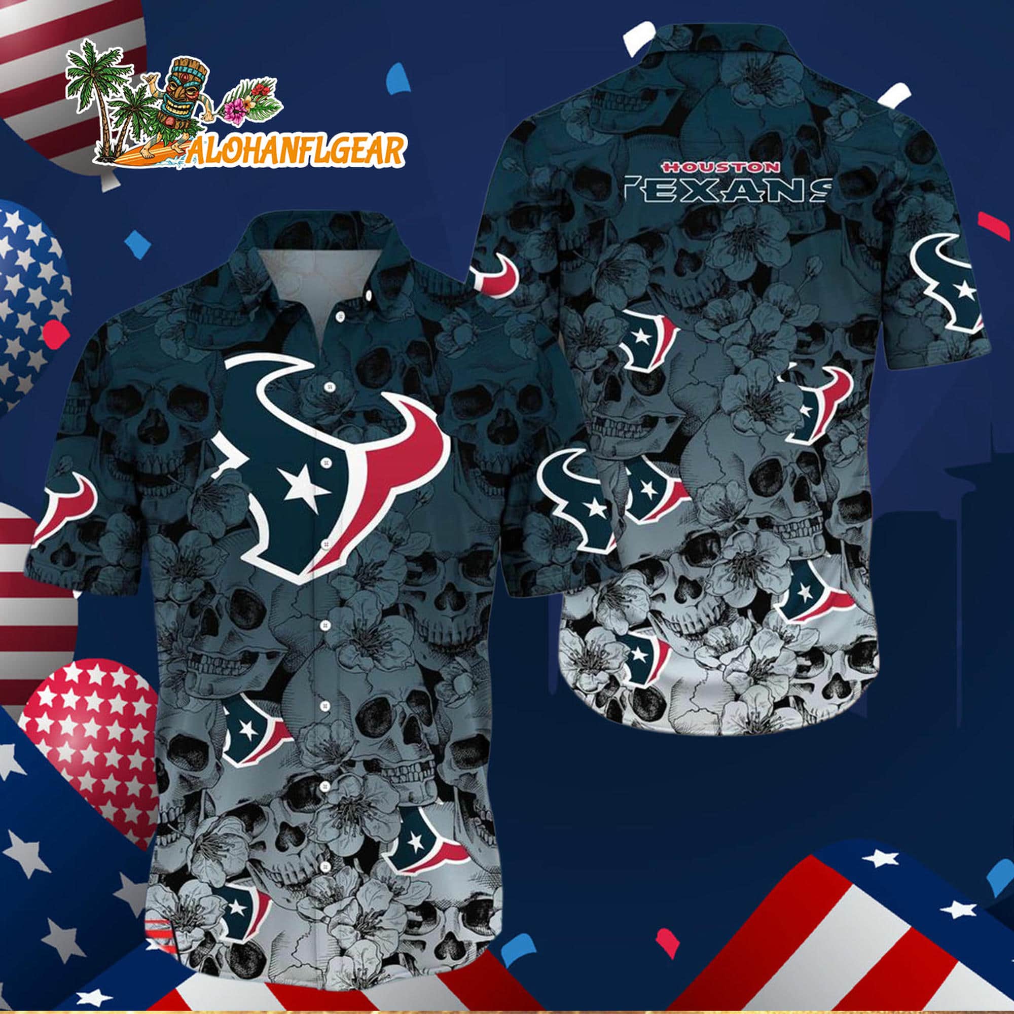 Houston Texans Skull Pattern Aloha Hawaiian Shirt