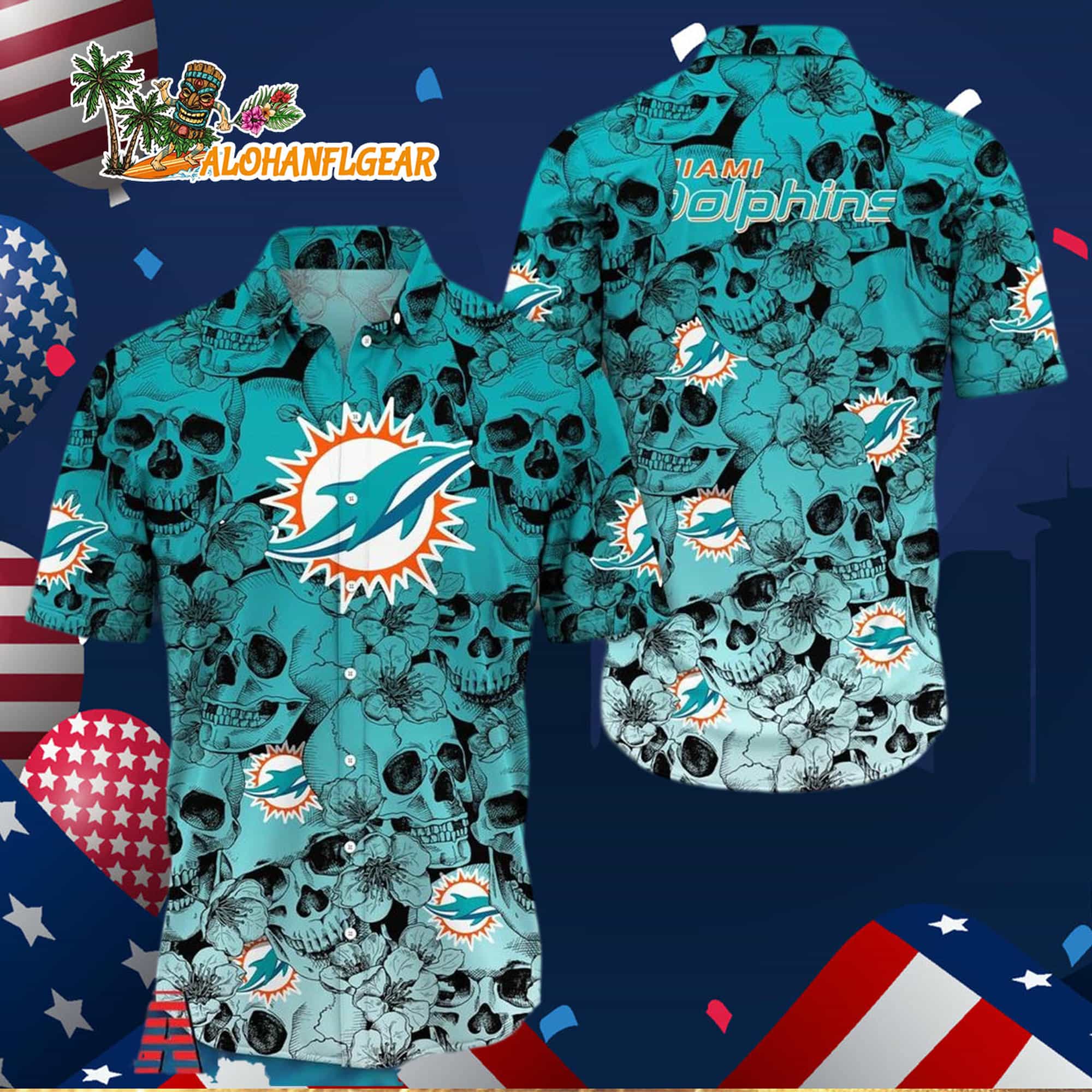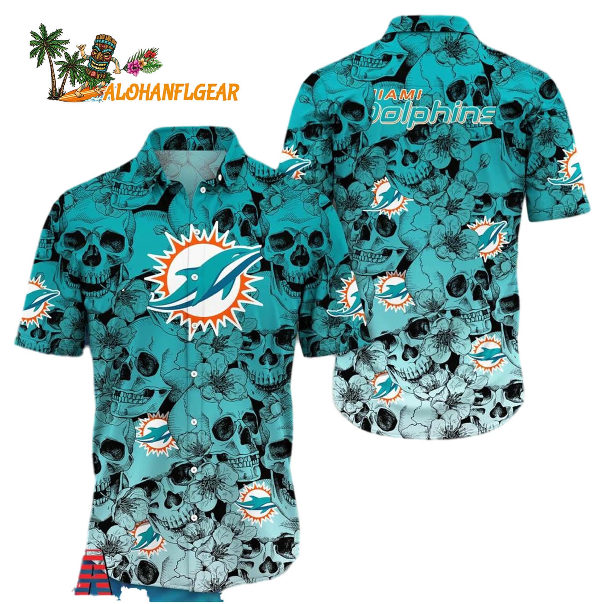 Photos Of Miami Dolphins Skull Pattern Aloha Hawaiian Shirt