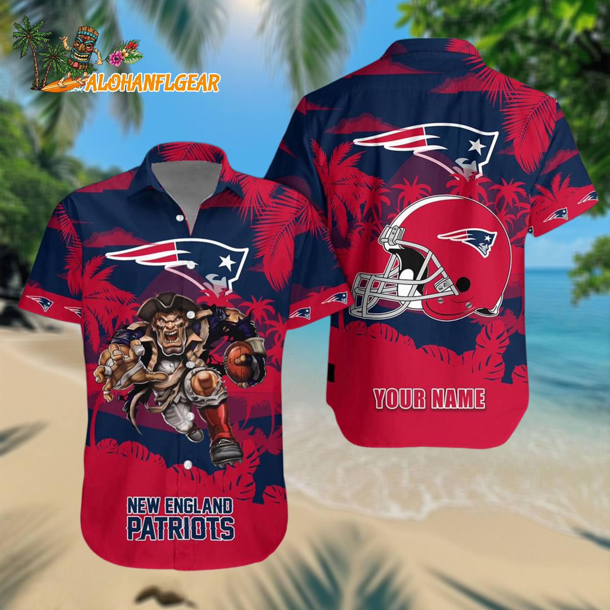- New England Patriots Palm Tree Tropical Trendy Football Custom Name Hawaiian Shirt