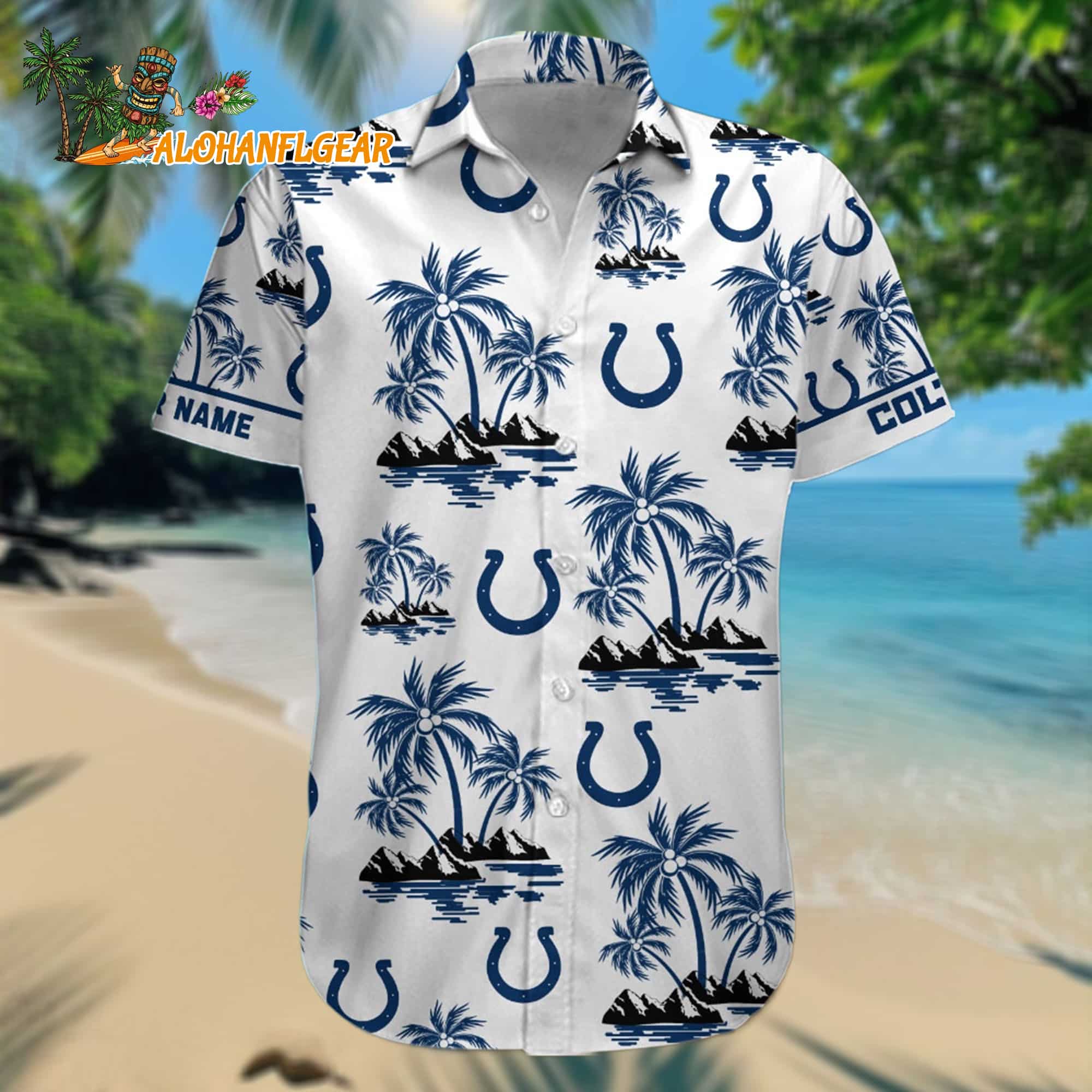 👉 Shop your Personalized Indianapolis Colts Palm Tree Tropical Summer Hawaiian Shirt now at AlohaNFLgear.com and show your team colors the tropical way.
