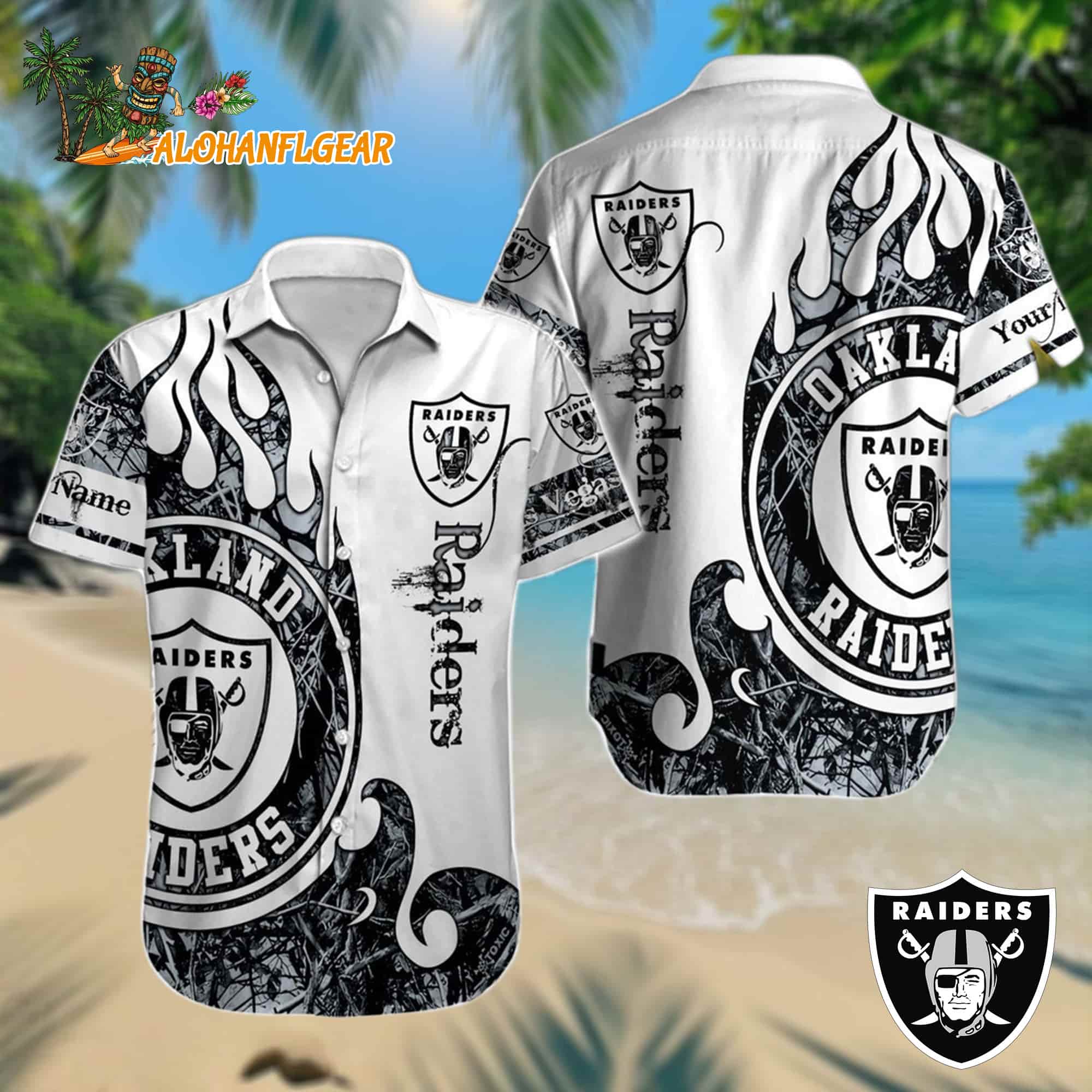 2. Personalized Las Vegas Raiders Football Mascot Summer Hawaiian Shirt