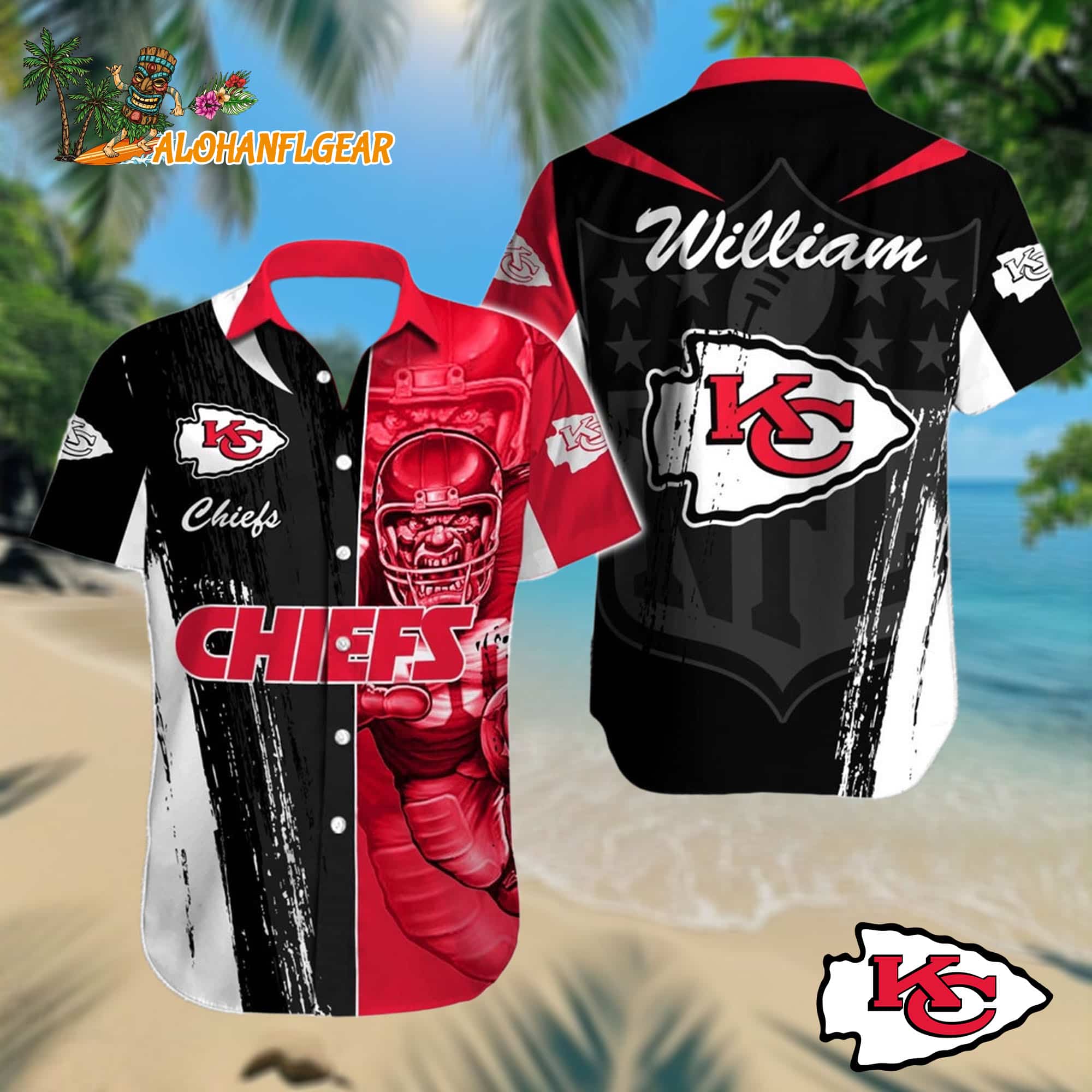 Photos Of Personalized Nfl Kansas City Chiefs Hawaiian Shirt Special Half Tone Mascot Aloha Shirt