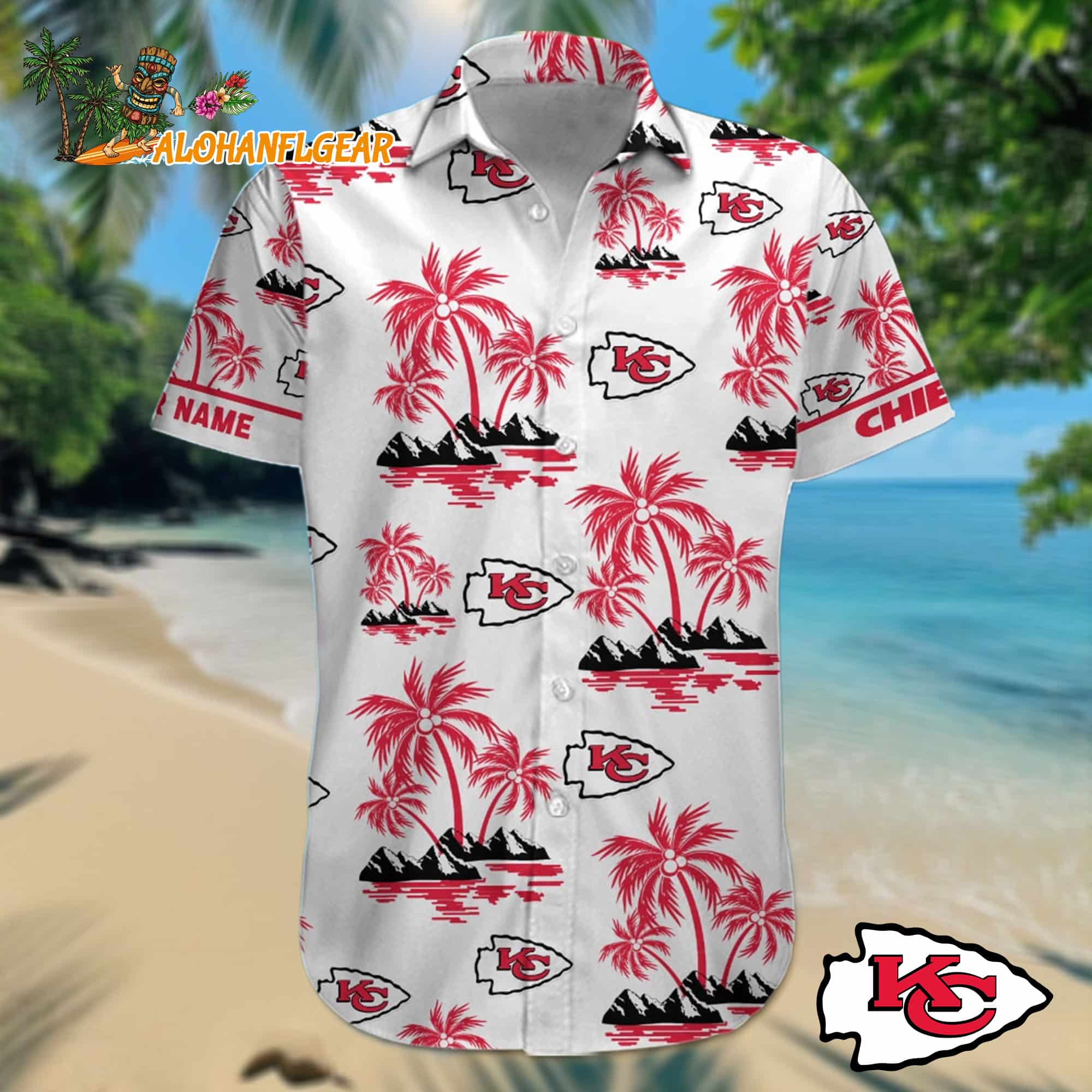 - Kansas City Chiefs Palm Tree Tropical Trendy Football Custom Name Hawaiian Shirt
