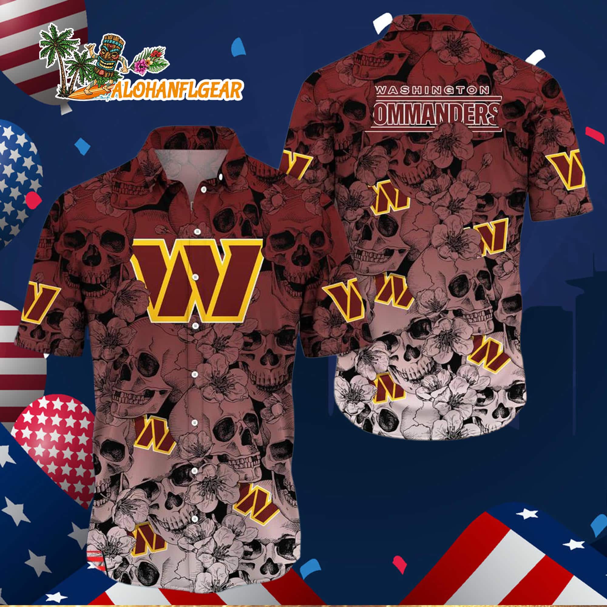 👉 Shop your Washington Commanders Skull Pattern Aloha Hawaiian Shirt now at AlohaNFLgear.com and show your team colors the tropical way.